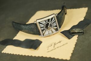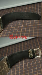 時計本体・Dバックル・ガルーシャキャビアストラップ・裏地クロコダイルまで施工。※トリプル施工