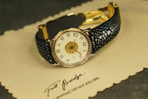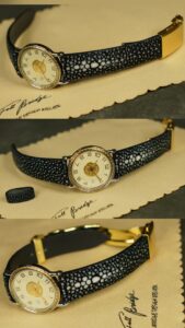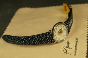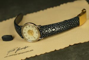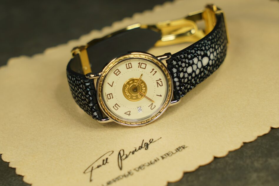 ガルーシャ特有の輝きと硬質さを活かし、Hermès Sellier Date専用に制作したフルオーダーストラップ。
